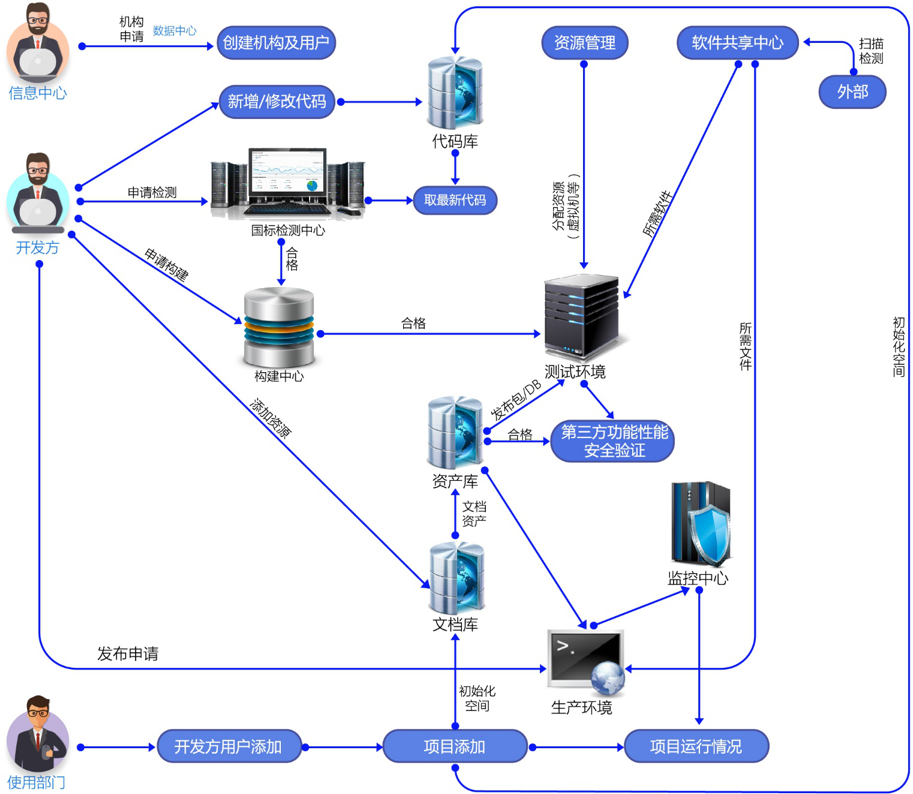 建立软件从源代码检测到发布的闭环流程,保证交付的完整性、部署的一致性、系统运行的安全性和可靠性,从源头杜绝以前代码更新发布的随意性。同时通过平台,能够对招标、建设等多个环节产生信息化系统进行文件粒度的掌控,在更新升级的过程中,也能进行增量检测。为无形资产审计提供保障。